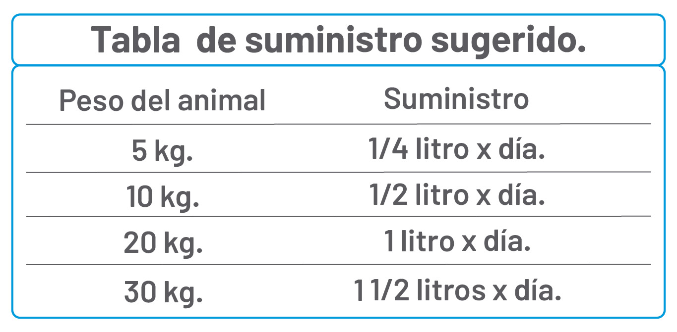 • La forma adecuada para suministrar el sustituto lácteo hasta las 3er semana de vida del cachorro es mediante una mamadera provista con tetinas intercambiables de caucho, luego utilizar un recipiente con bordes bajos